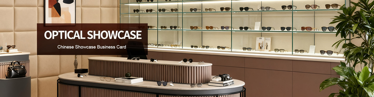 have designed a variety of counters, front showcases, upright showcases, and wall showcases suitable for glasses display according to the display mode of optical shops. The dimensions of these